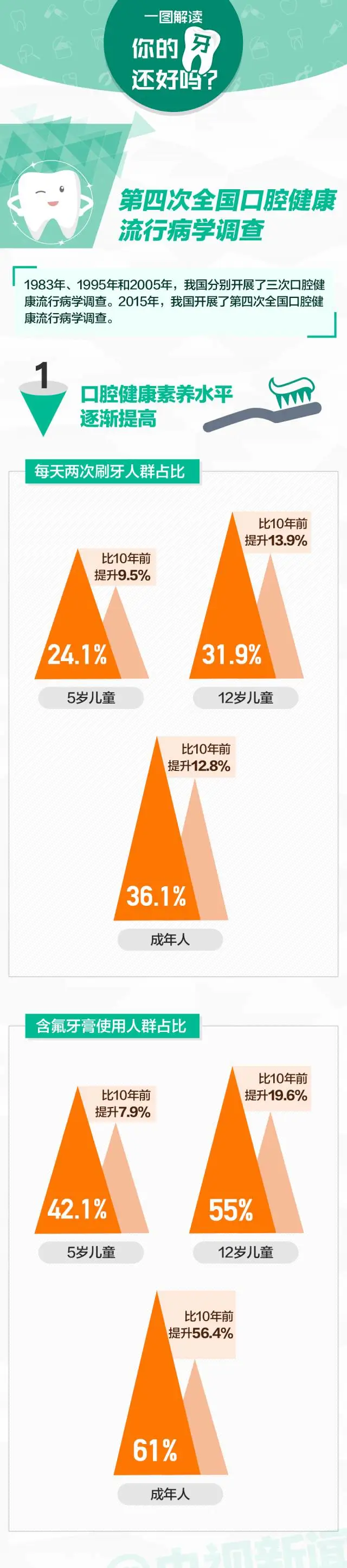 今天是第二十九个“全国爱牙日”,今年的宣传主题是“口腔健康 全身健康”。国家卫计委昨天公布了2015年开始的第四次全国口腔健康流行病学调查结果。