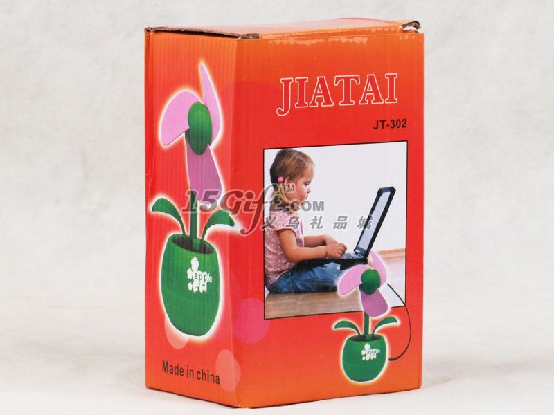 苹果花USB迷你风扇,产品颜色有:粉色、绿色、橘黄色 ,单个彩色纸盒包装,可以连接电脑和放电池两用(3节5号电池),产品上可以制作商标!欢迎前来咨询!