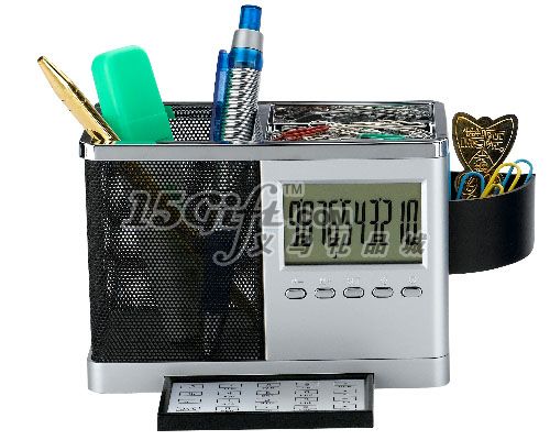 产品尺寸约为:13.7*6.5*10cm,单个纸盒包装,80个/箱。主要功能:带计算器,可显示时间和日期,旁边抽屉可放小东西。可印刷logo,适用于商务礼品