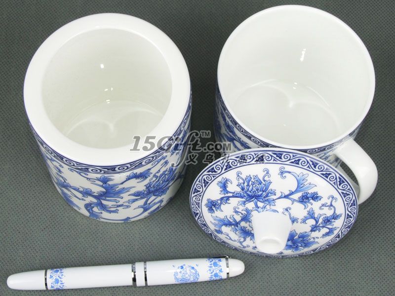 一个笔筒9*9*11cm,一个杯子13*10*12cm,一支笔14.5*1.5cm,皮革盒包装. 可做中秋、国庆等节日性礼品和会议礼品。