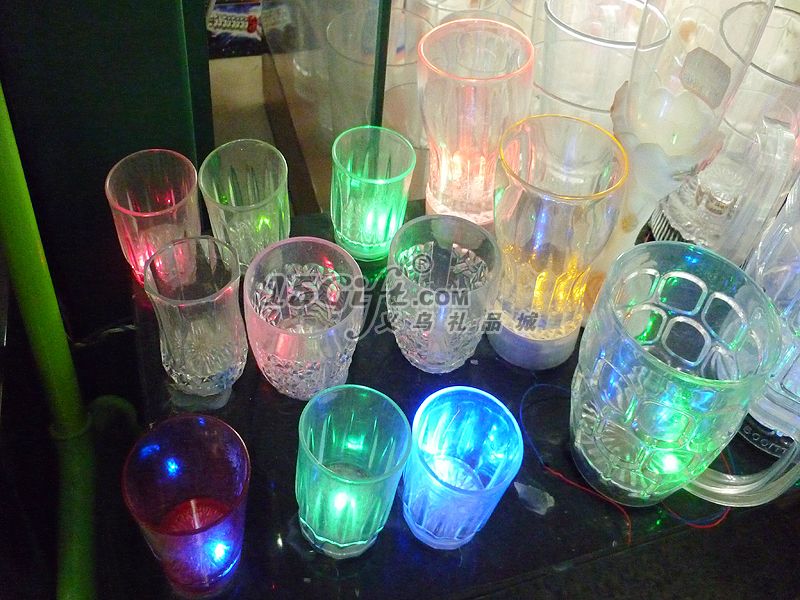 杯子有大小,特色:五颜六色的闪光灯。具体订购量请联系我们。可打LOGO