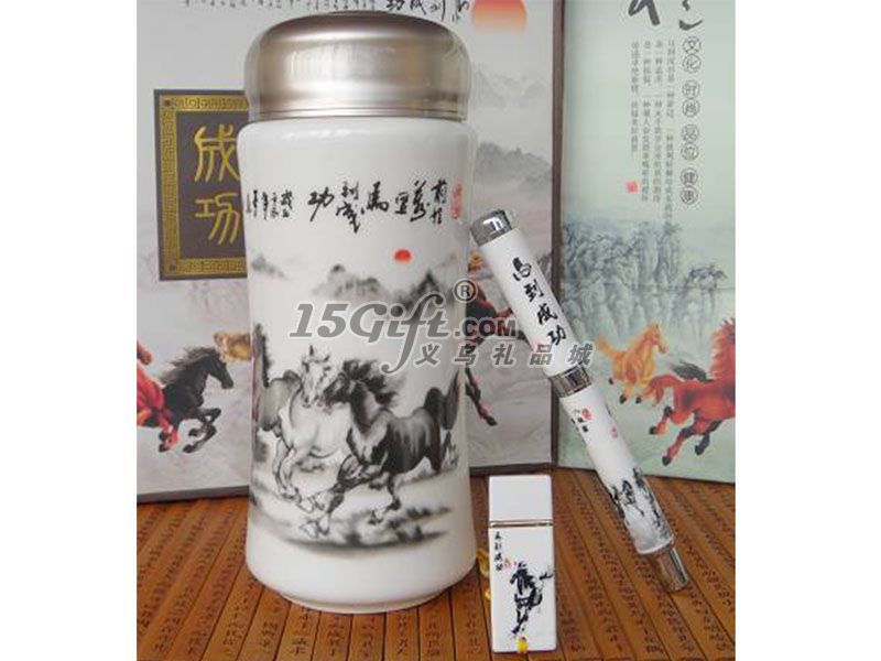 马到成功陶瓷杯+陶瓷笔二件套