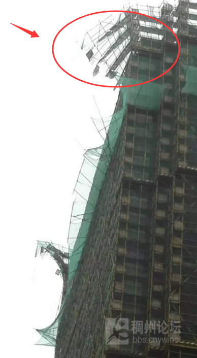 有网友论坛发帖爆料:“太危险了!义乌廿三里歌山建筑公司楼层外架从二十几层倒掉了!如果有人在下面被砸到简直不敢想象!”