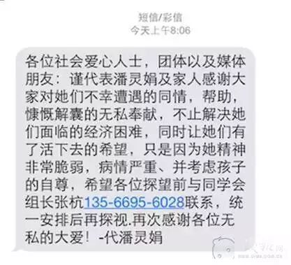 如果你知道这个病怎么治疗,或者是想帮助这个家庭的。可以打潘灵娟的同学张杭(13566956028)联系。因为潘灵娟目前已经无法和外界交流了。