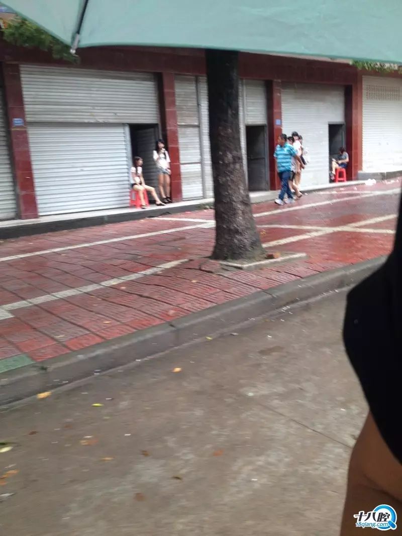 再往前走几步,那些卷帘门边上的小门口都有一些穿着暴露,画的浓墨胭脂 的女孩子,零零散散的坐着,而且不止是一个小门。