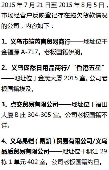 义乌经侦通报近期存在拖欠货款情况外贸公司(附名单)