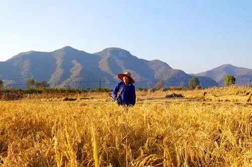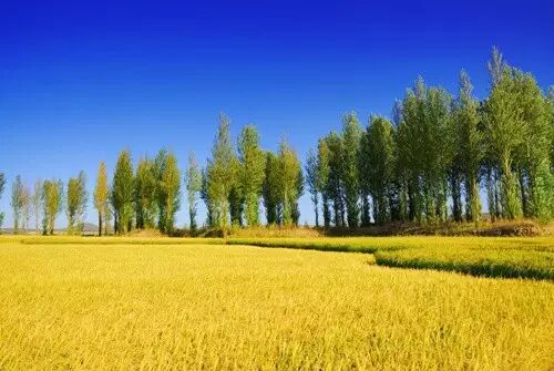 金黄的稻田,很高很蓝的天空,空气都变得清爽起来。