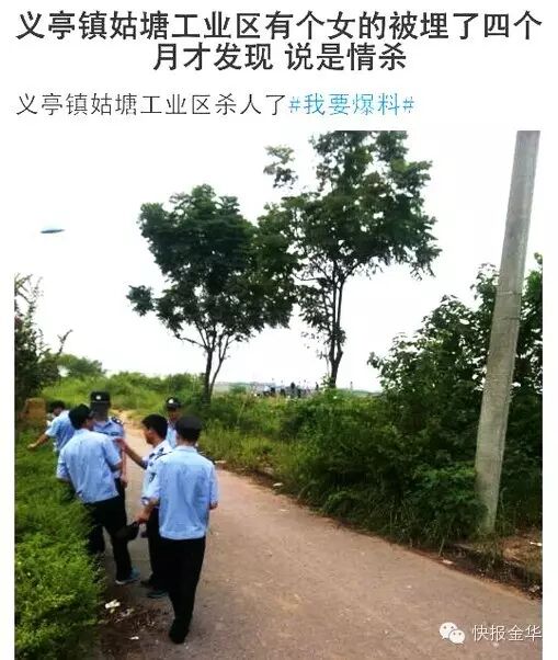 有网友爆料说,义乌义亭镇姑塘工业区有个女的被埋了四个月才发现,据说是情杀,还被分尸,尸体用石头压在一个废墟下面。