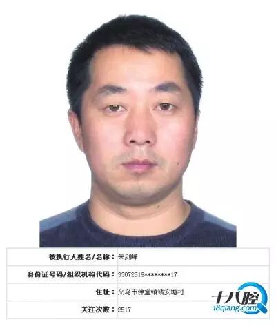 但“光鲜”的外表背后,朱剑峰却是浙江金华地区著名“老赖”。
