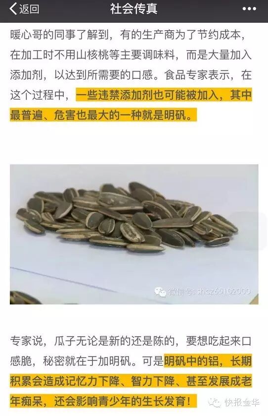 专家说,瓜子无论是新的还是陈的,要想吃起来口感脆,秘密就在于加明矾。