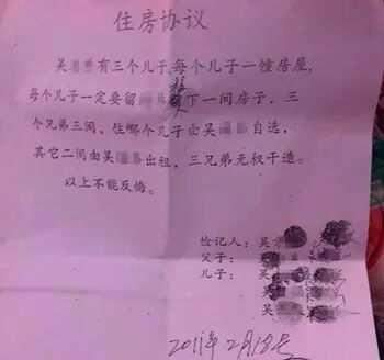 (吴海某凭借这张“住房协议”告儿媳、孙子)