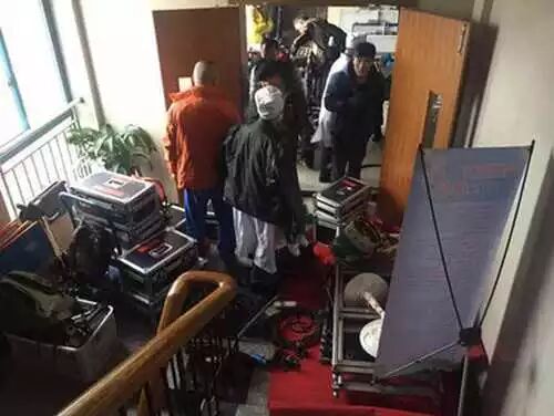 电视剧《鸡毛飞上天》今天在义乌某医院取景拍摄,演员殷桃张译在现场