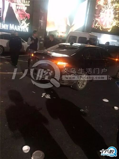 当时一辆黑色宝马正在倒车,突然猛加速撞到2个路人和停在路边的一辆白色Jeep越野车,两个路人瞬间被撞飞,黑色宝马驾驶员是个二十来岁的小伙子,据说是来酒吧接他朋友的,白色Jeep是饭店老板的。