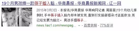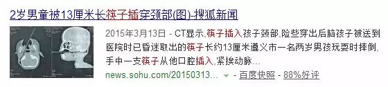 今年以来,已经发生了多起宝宝因跌倒导致筷子插入体内的事件。例如: