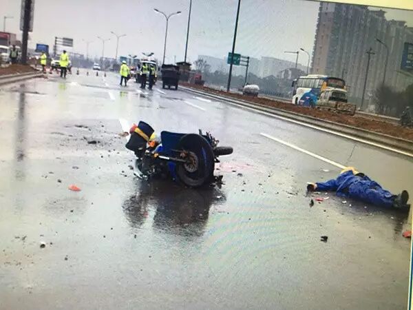 昨天早晨6点半,义乌交警接到群众报警,环城南路物资市场路段有一辆倒地的摩托车,车边躺着一个人,但是附近没有其它车辆。