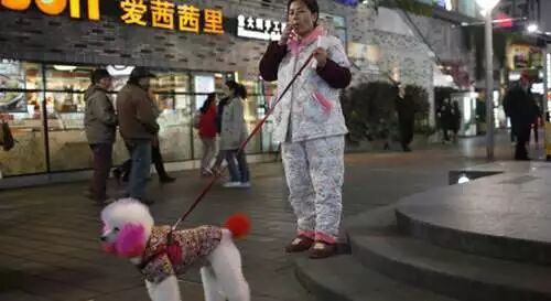 不过话说这大冬天的,大家出门的睡衣穿着不应该是这个样子的吗?: