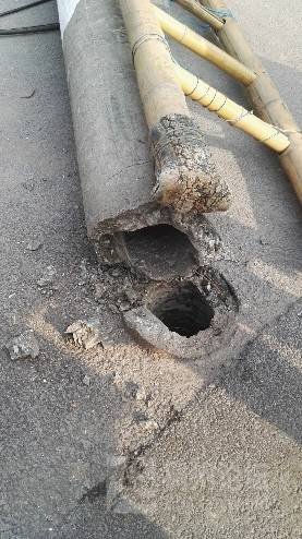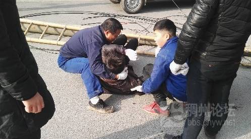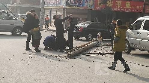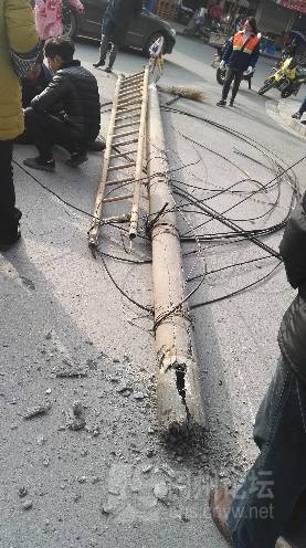 “经过稠江街道下门村附近的时候,看见有人爬竹梯上去,突然电话杆砰的一声倒下来,所幸的是没有压到任何行人和车辆,不幸的是铁通公司的工作人员左腿被压了……也算是不幸中的万幸。在此,我想说,都快过年了,希望大家注意安全!同时也希望相关部门把关好公共设施的质量安全……”