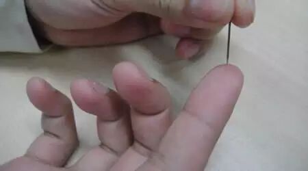 二:心脏病猝死发生后,马上脱掉患者袜子,用缝衣针分别刺其十个脚趾尖,各挤出一滴血,不等挤完十个脚趾尖,病人即清醒过来。