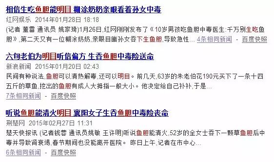 吃生鱼胆明目?这个偏方后果很严重!小编随意检索下就有许多案例: