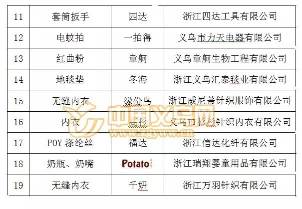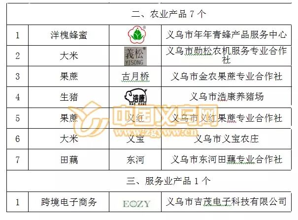 这次27个被评2015年义乌名牌产品的名单中,有19个是工业产品, 7个农业产品,还有1个服务业产品。