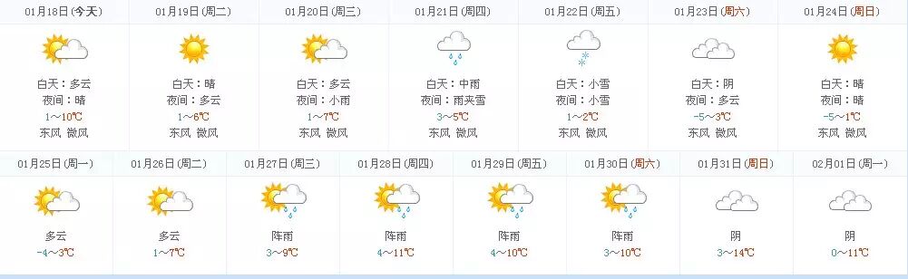 未来15天的天气预报:
