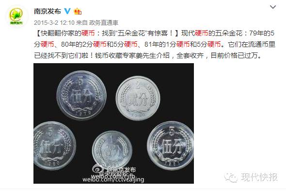 “@江宁公安在线”在微博发帖介绍:我国硬币的铸造并不是每年都进行,而是根据市场规律适时开启,所以并不是每个年份都有对应的硬币。以1979版5分硬币为例,这一年铸造的少量硬币被封装成了1979年硬币套册对境外出售,并没有进入市场流通。也就是说,除非有国外回流,并有人将套册拆散,否则市场上基本不可能有单枚的1979年版5分硬币。