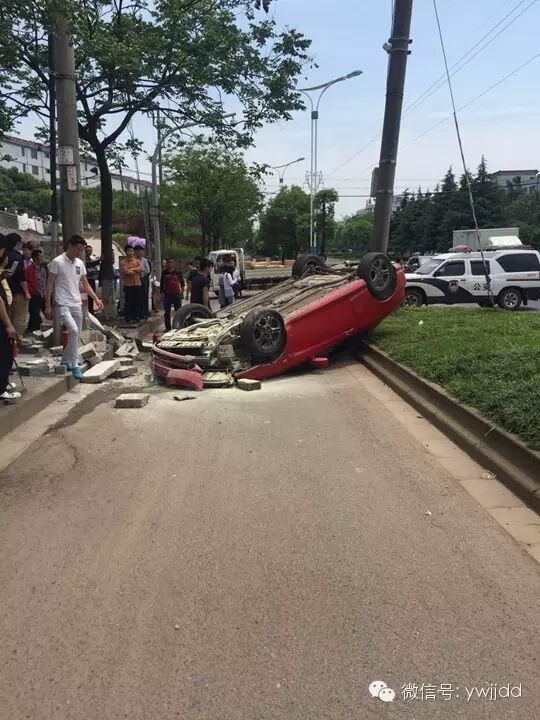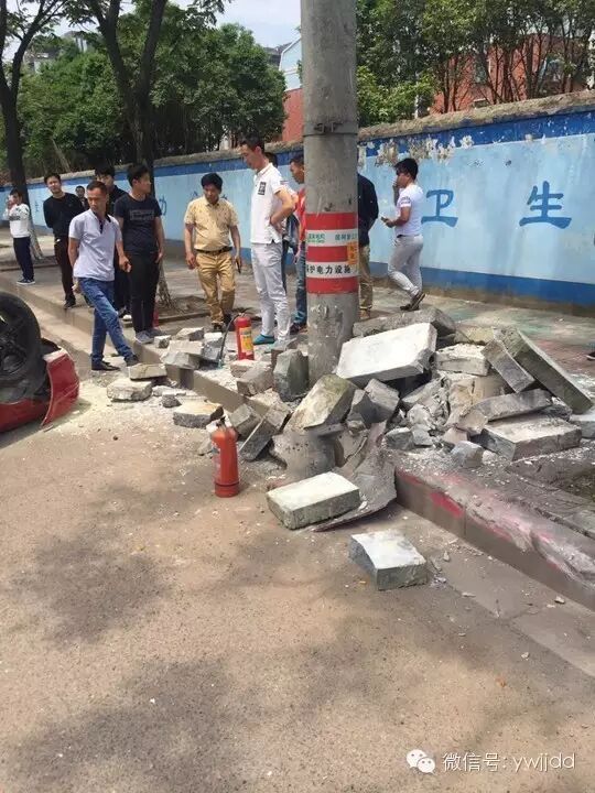 想必当时肯定上演了“速度与激情7”,比起被撞砖块来,车子还是软了一点,中国电力电线杆那是杠杠的,略损“皮毛”,但,这红车就不好说了,修理费少说也要万把块。