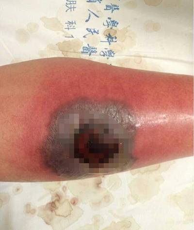 病情远比想象的严重。黄女士说,在皮肤科观察治疗了一周左右,丈夫持续高烧不退,创口一再变大,周边组织则坏死变黑,医院找来烧伤科医生会诊,发现丈夫染上了坏死性筋膜炎。