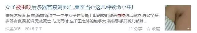 夏季到了,皮肤暴露面积较大,被虫咬后发生危险的新闻数不胜数……