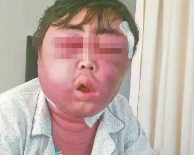 还有这个,答应我别笑——今年五月份,在苏州昆山工作的张先生值夜班时,脸部被蚊子叮咬了一口,当时并未引起他的注意。然而不多时,张先生就发现自己的脸肿了↓