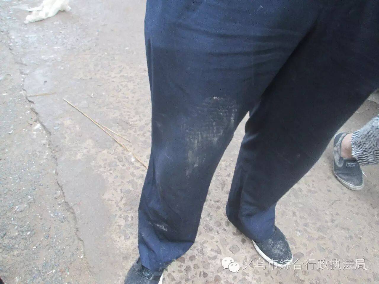 10时15分,执法队员对第二个摊点进行查扣,该摊点经营者拒不配合,并试图驾驶三轮车强行离开,执法队员上前制止。