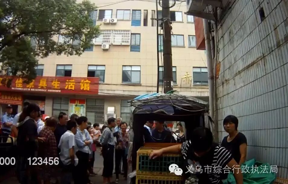 9月13日上午8时53分,义乌市执法局赤岸大队执法队员在巡查时发现赤岸三村菜场对面弄堂里有六个活禽摊点无照经营。执法队员上前进行劝导,并按照相关法律法规规定责令活禽经营者停止经营行为,其中有两位活禽经营者立即进行改正离开了现场,但其他经营者拒不改正。