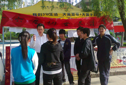 - 4月21日,由西安培华学院图书馆主办、图书馆学生管理委员会协办的 “世界读书日”系列活动在西安培华学院文化广场隆重举行。